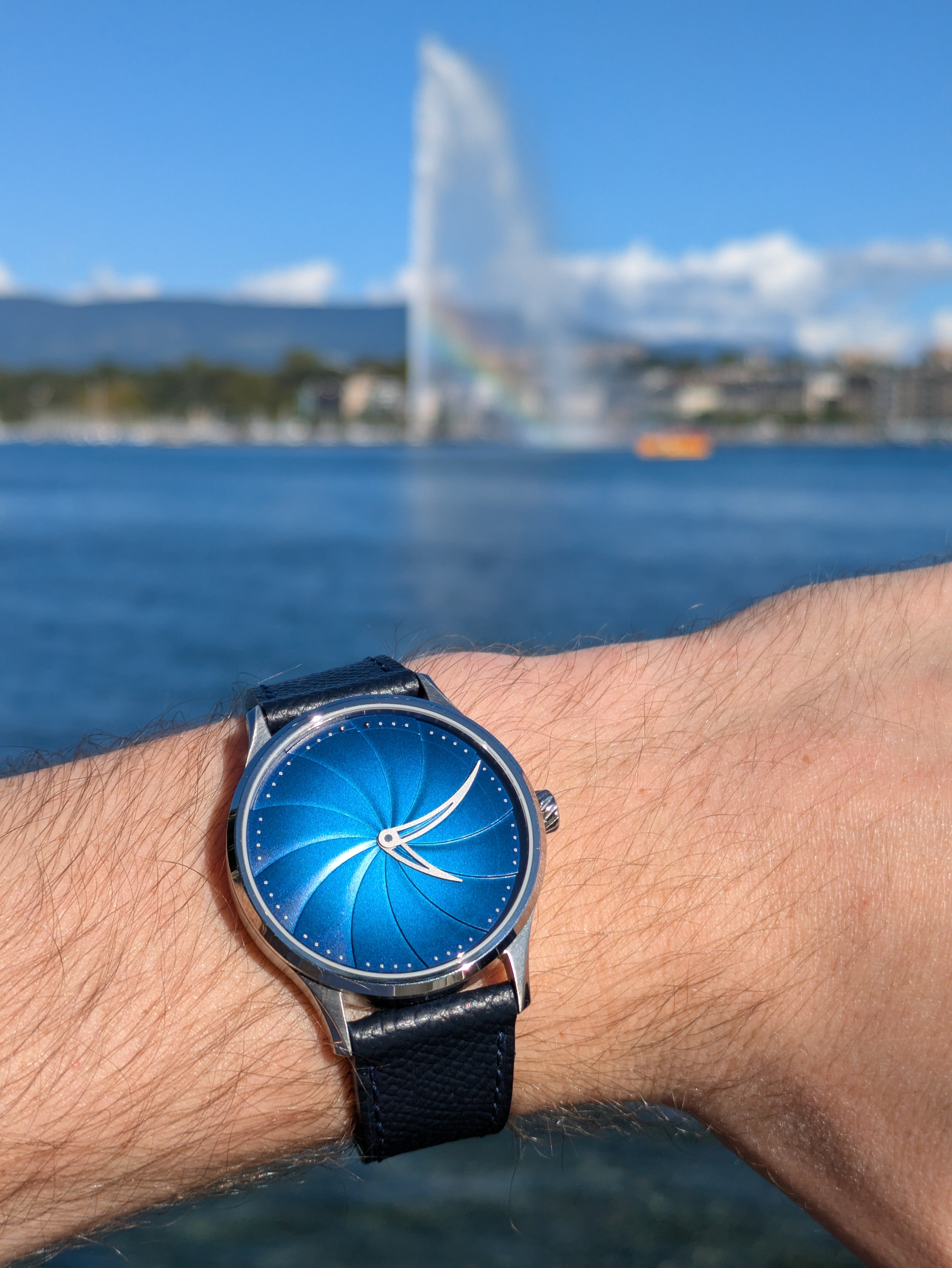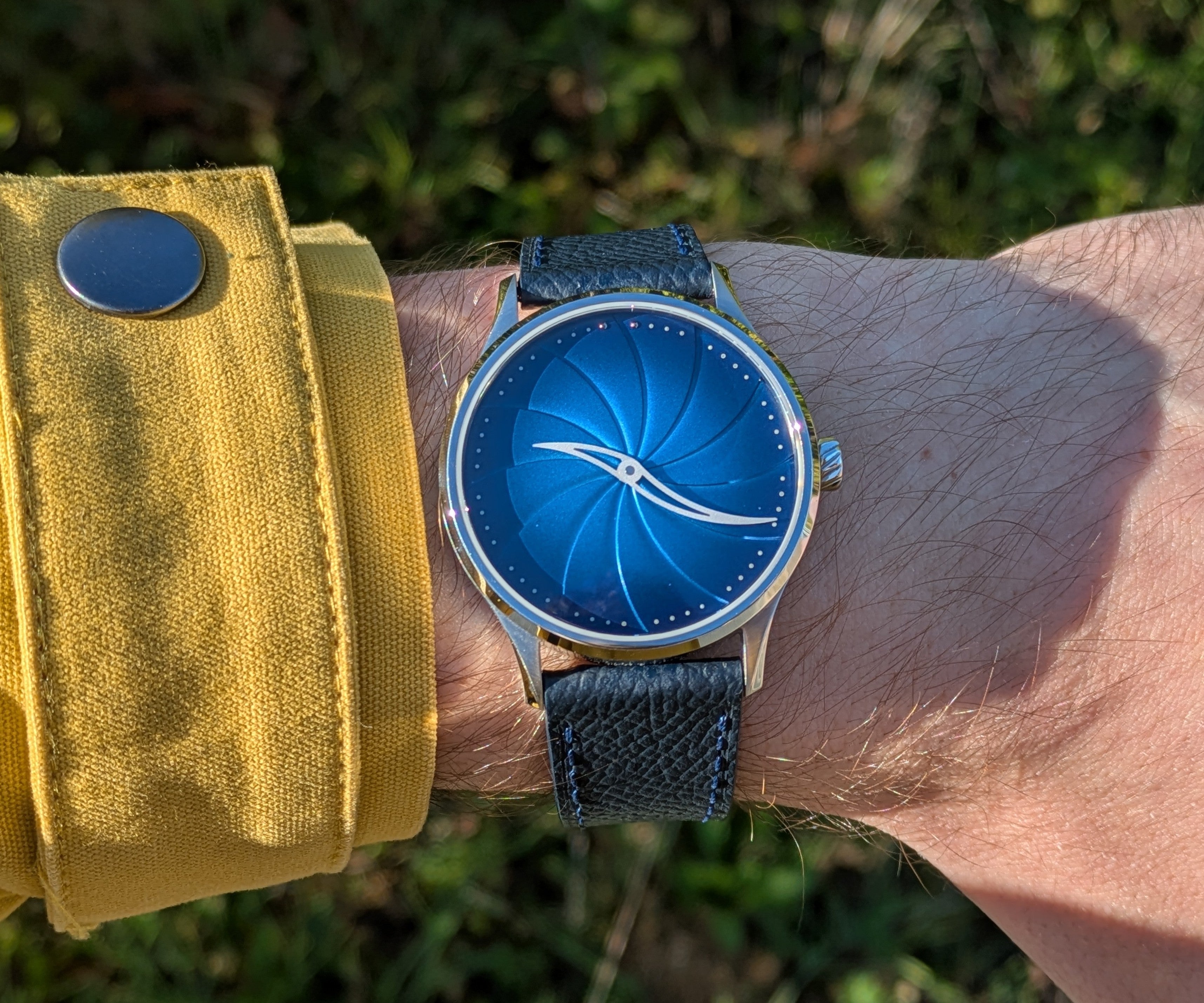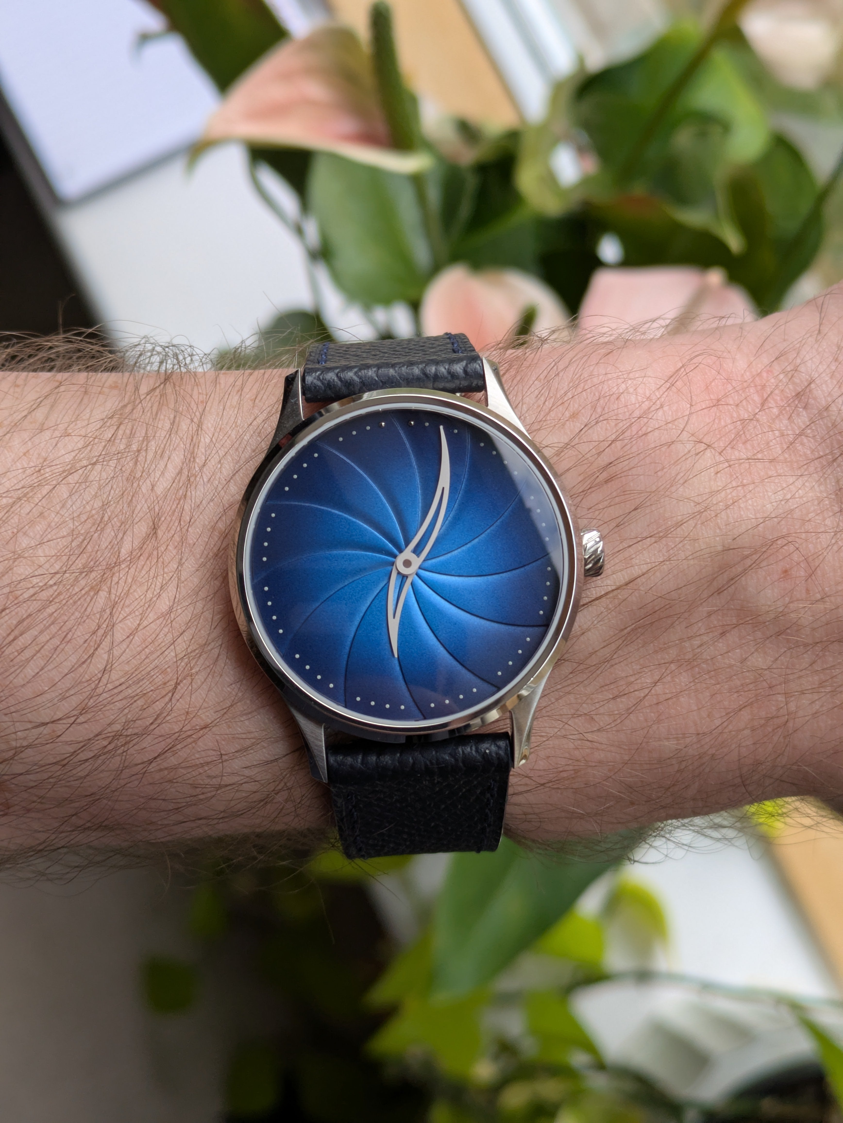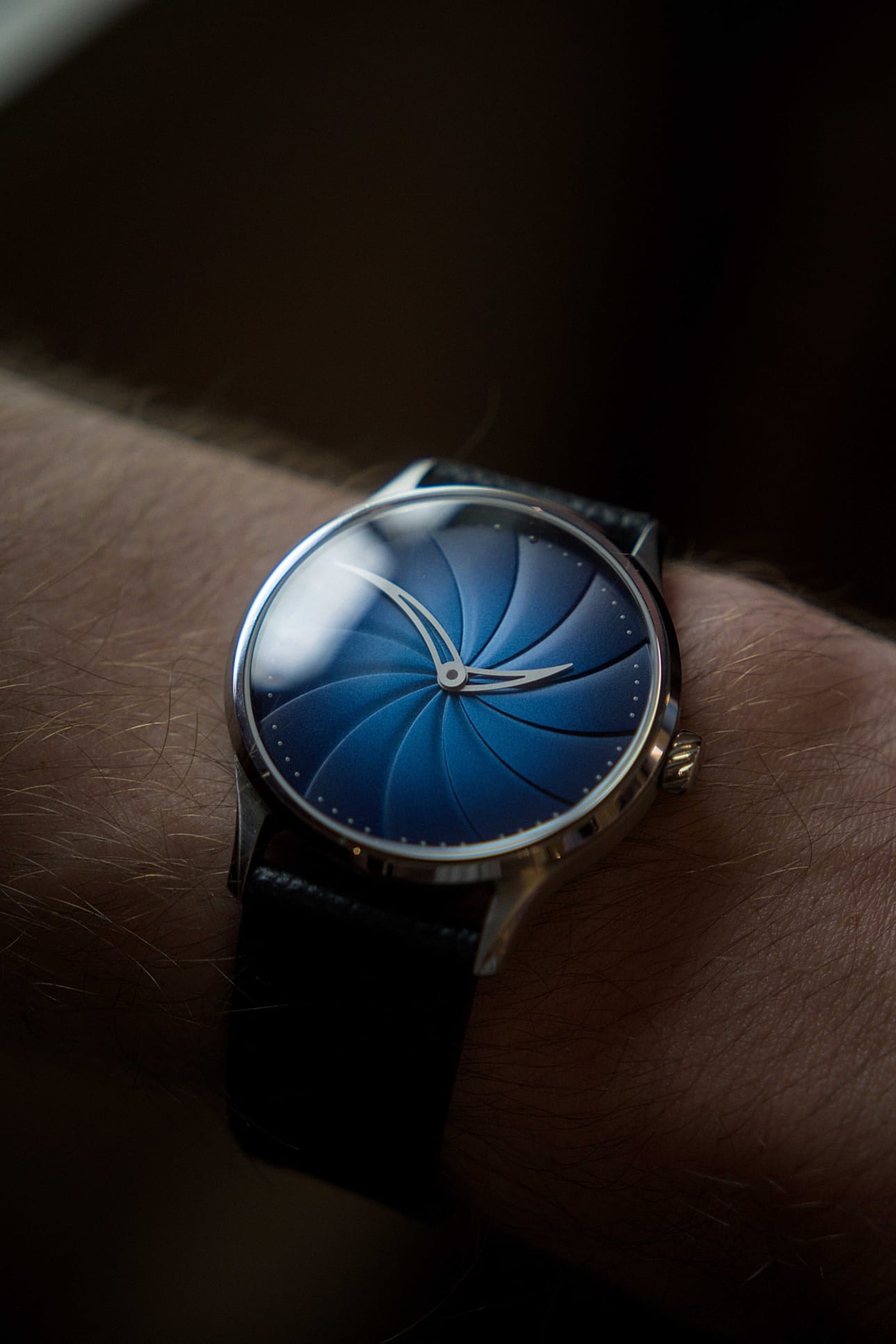 Maelstrom Blue: A translucent lacquer dial with a fumé gradient. The translucency of the blue lacquer shifts with changing light.