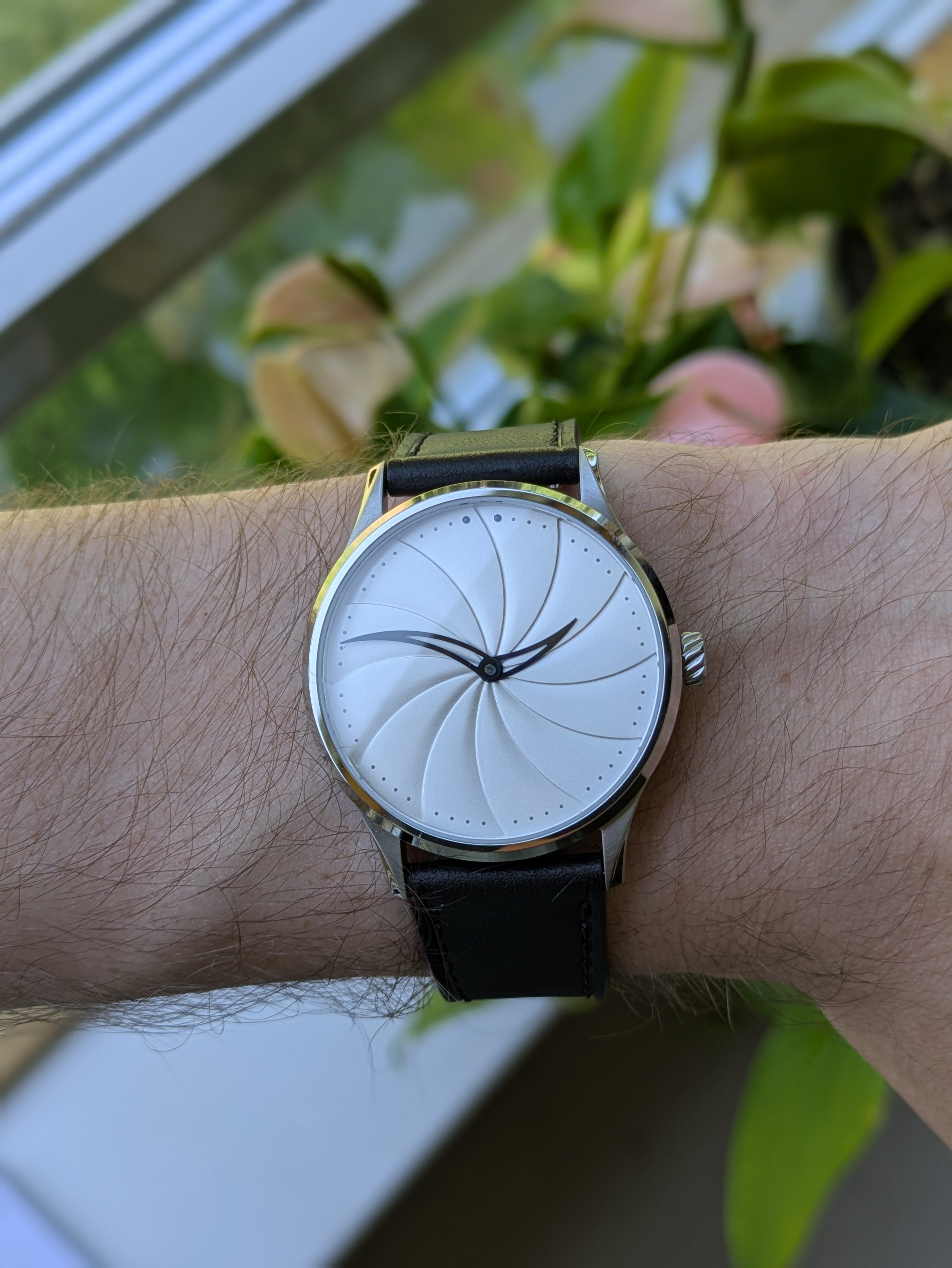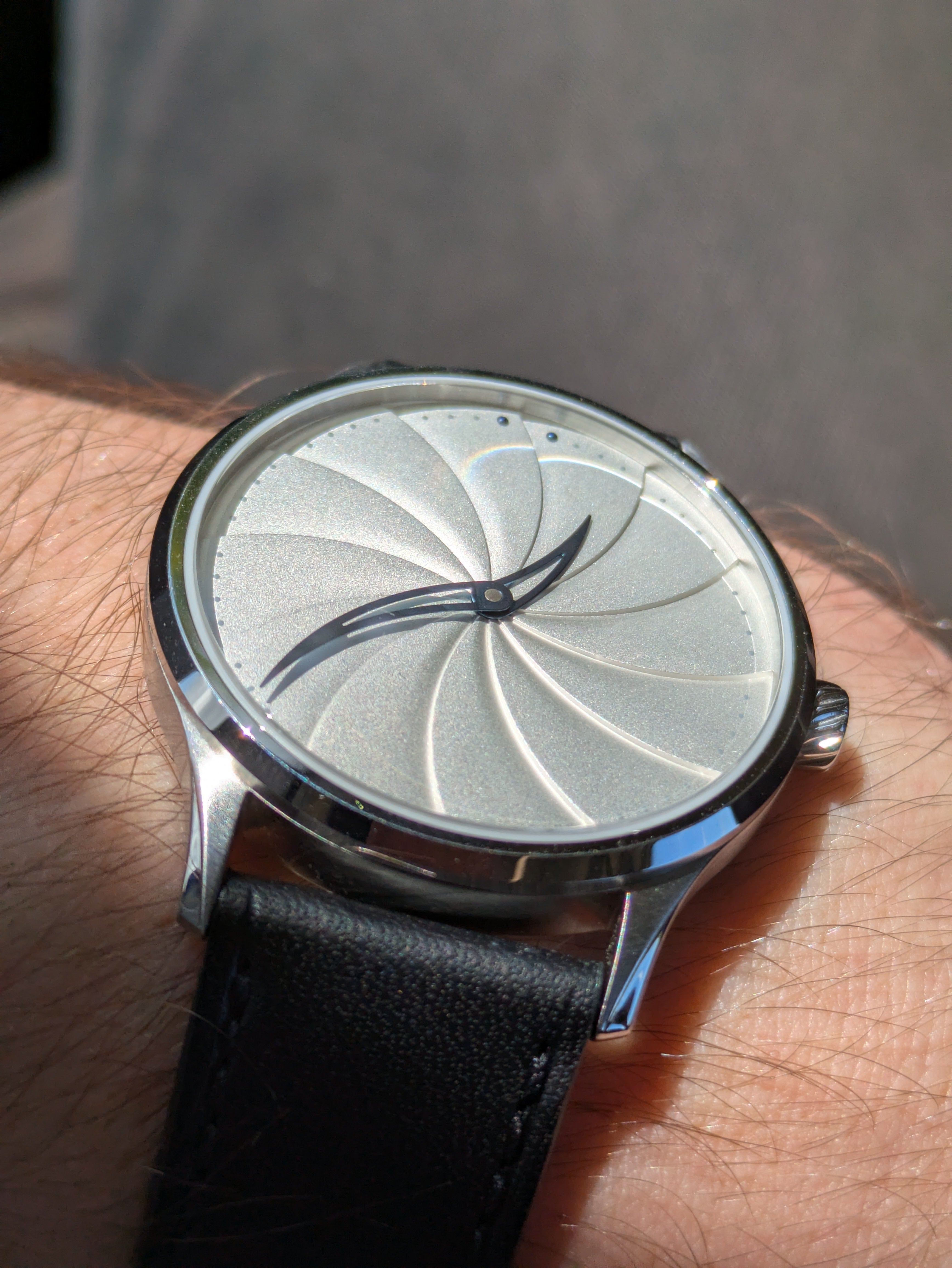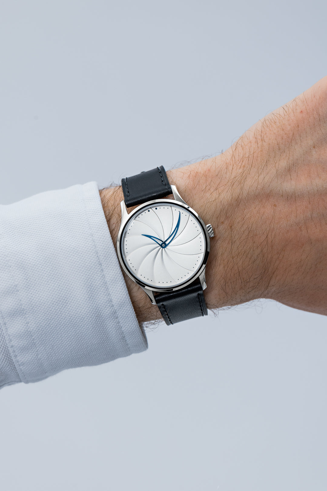 The Model 1 is the inaugural timepiece from Alpharo, and it breaks with convention in a deliberate, thoughtful way. Curved hands trace a spiral dial, each curve echoing the passage of time in a form that feels organic, flowing, and mathematical.